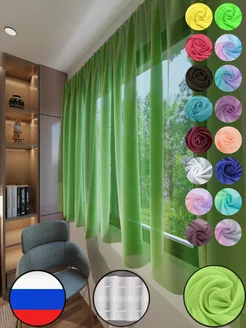 Тюль на кухню короткая 280 на 170 вуаль салатовая однотон