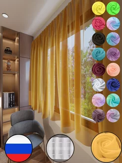 Тюль на кухню короткая 280 на 170 вуаль белая однотон
