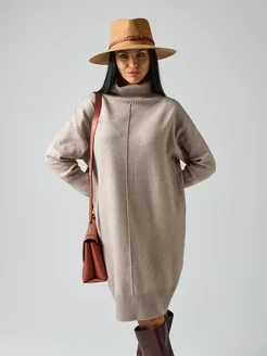 Платье бежевое вязаное короткое