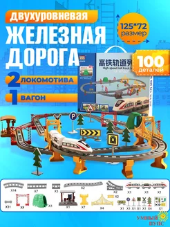 Железная дорога с электропоездом и вагонами большая 100 дет