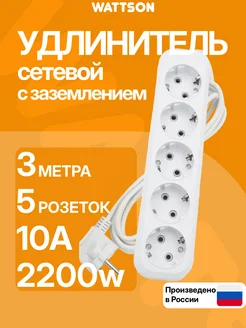 Удлинитель с заземлением 5 розеток 3 метра 10А