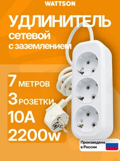 Удлинитель с заземлением 3 розетки 7 м 10А
