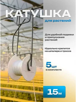 Катушка 15 м и крючок для подвязки растений 5 шт