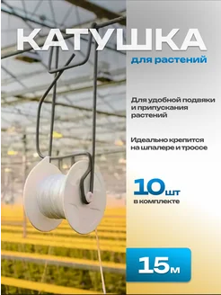 Катушка 15 м и крючок для подвязки растений 10 шт