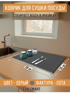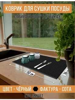 Коврик для сушки посуды ячеистый чёрный сотовый 50х39