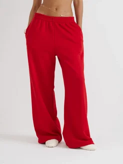 Широкие джоггеры без начеса с утяжкой красного цвета