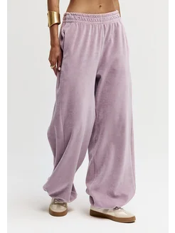 Широкие брюки на резинке из велюровой ткани