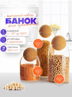 Банки для сыпучих продуктов и круп 3 шт, стекло