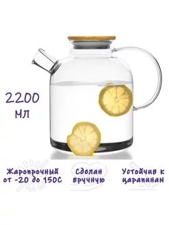 Чайник заварочный стеклянный 2,2 л с крышкой, заварник