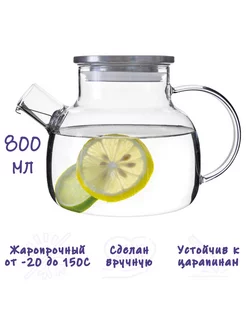 Чайник заварочный стеклянный 800 мл с крышкой, заварник
