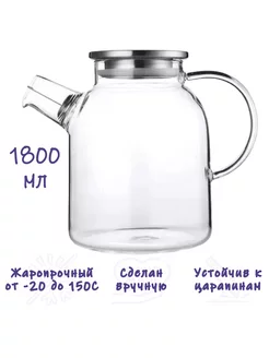 Чайник заварочный стеклянный 1,8 л с крышкой, заварник
