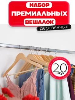 Вешалки плечики для одежды деревянные 20 шт, бежевые