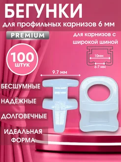 Бегунки для профильных карнизов 6мм набор 100 шт