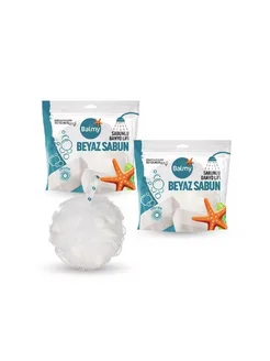 Мочалка с кусочками белого мыла
