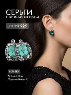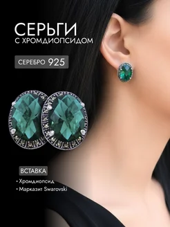 Серьги серебряные с хромдиопсидом и марказитами