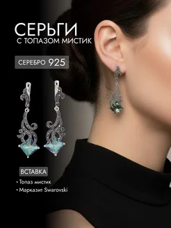 Серьги серебряные с мистик топазом и марказитами