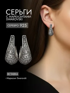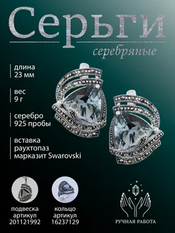 Серьги серебряные с раухтопазом и марказитами Swarovski