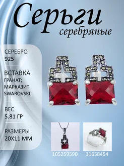 Серьги серебряные с марказитами и гранатом