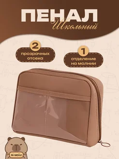 Пенал школьный коричневый большой