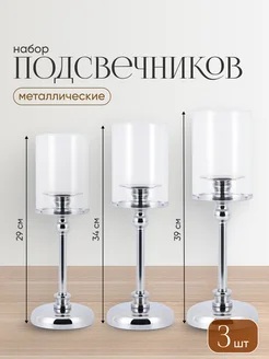 Подсвечник металлический высокий со стеклянной колбой 3 шт