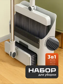 Щетка и веник с совком для уборки на длинной ручке