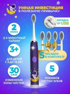Электрическая зубная щетка детская звуковая таймер для детей