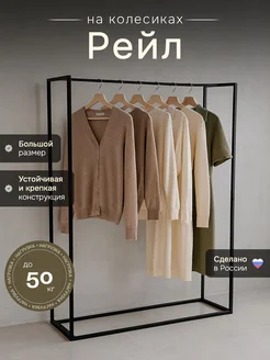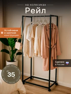 Вешалка напольная для одежды на колесиках металлическая рейл