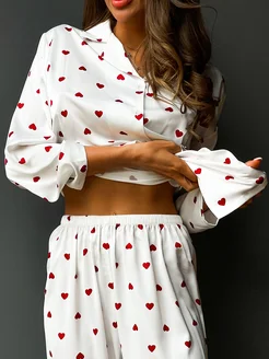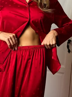Пижама с брюками и рубашкой шелковая