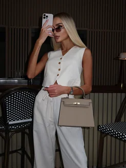 Костюм летний льняной с жилетом и брюками