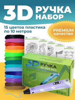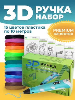 Новогодний набор 3D ручка PRO 15,150м пластика PLA,трафареты