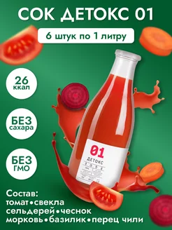 Сок Натуральный "Детокс" без сахара, микс из 6 вкусов по 1л