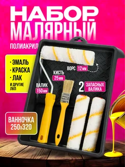 Валик малярный для краски с кистью и малярной ванночкой