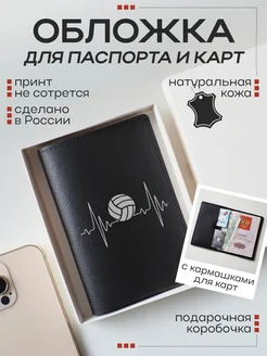 Кожаная обложка на паспорт с кармашками с принтом Волейбол