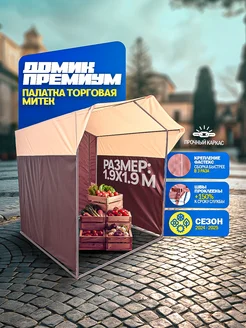 Палатка торговая "Домик Премиум" бежево-коричневая 1,9х1,9