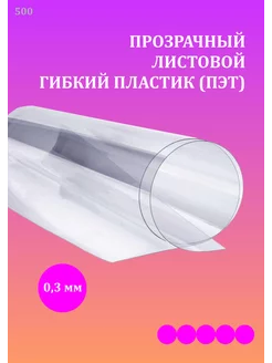 Пластик листовой прозрачный ПЭТ 0.3 мм 1220х500 мм 1шт