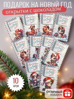 Шоколад на новый год 2026 прикол, открытки 10 штук