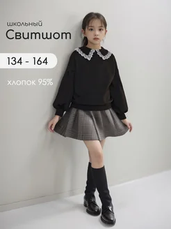 Свитшот черный школьный для девочки с воротничком