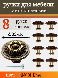 Ручка кнопка для мебели металлическая круглая 8 шт