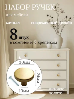 Ручка кнопка для мебели металлическая круглая золото 8 шт