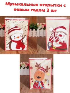 Музыкальные открытки с новым годом и рождеством 3D 3 шт