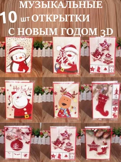 Музыкальная Открытка С новым Годом и рождество 3D 10шт