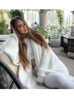 Кардиган белый пушистый длина миди альпака