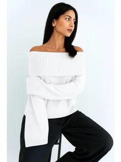 Свитер с открытыми плечами вязаный