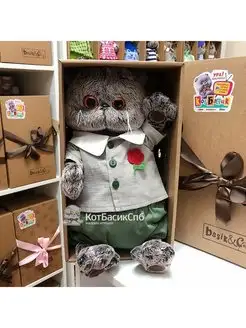 Мягкая игрушка 30 см Кот Басик в комплекте с цветком