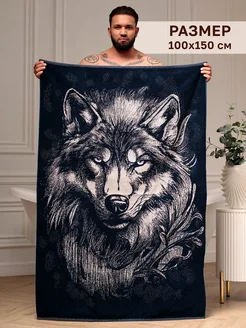 Махровое полотенце в подарок мужу с волком