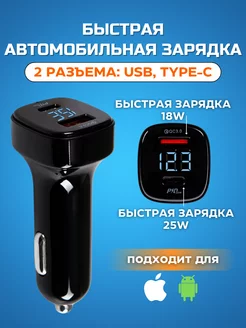 Зарядка в прикуриватель с вольтметром и быстрой зарядкой