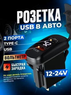 USB розетка в заглушку авто с быстрой зарядкой и вольтметром