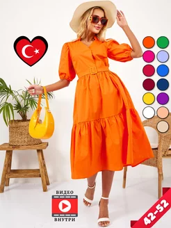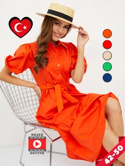 Платье рубашка повседневное оранжевое на лето 2025 года