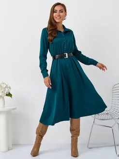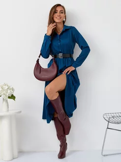 Платье рубашка повседневное темно-синее на весну и лето 2025