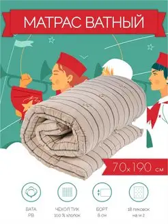 Матрас ватный 70х190 200 односпальный, беспружинный матрас